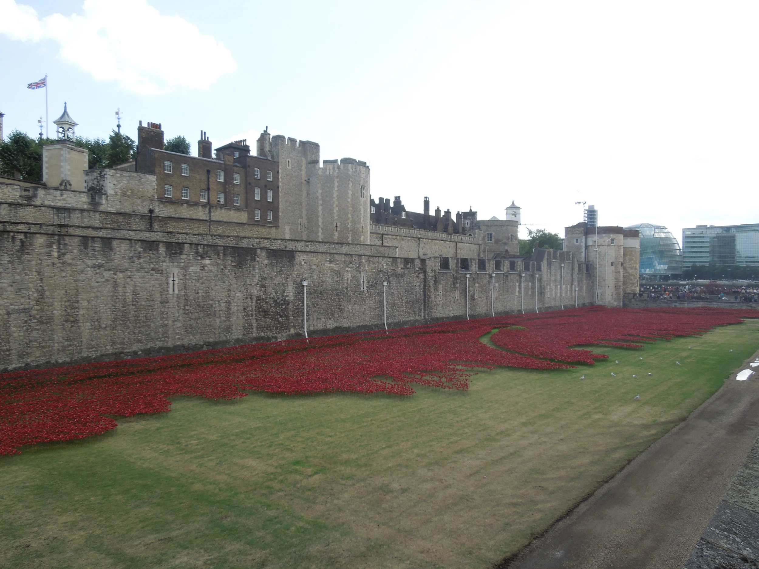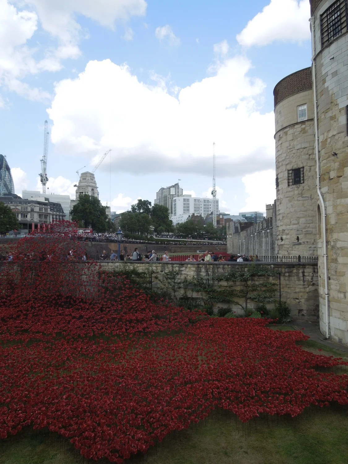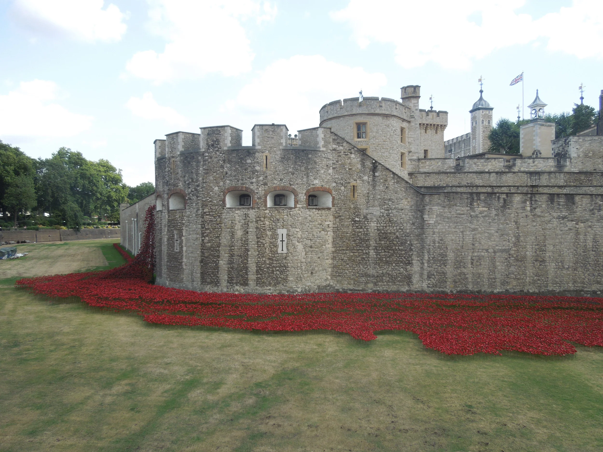 Entitled Blood Swept Lands and Seas of Red, these hand made poppies assemble together in the moat, formerly a place used as a recruiting and training station for soldiers that would become men of the 10th (‘Stockbrokers’) Battalion of the Royal Fusiliers (City of London Regiment).